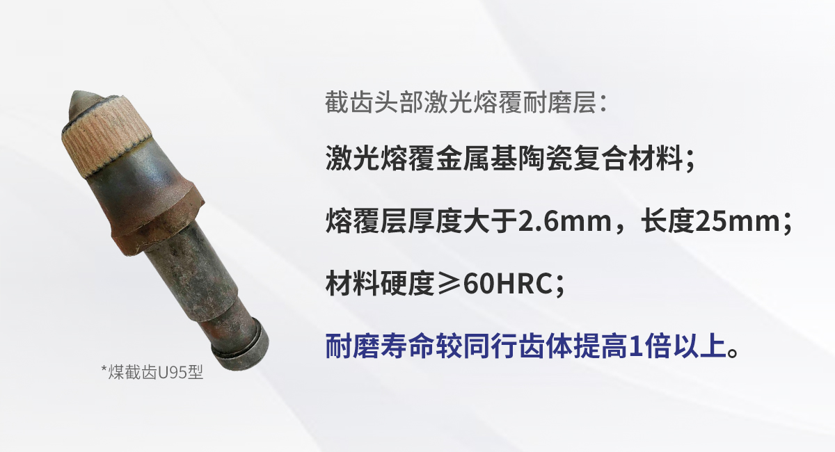 與電鍍、噴涂、堆焊和氣相沉積等傳統工藝相比,激光熔覆的熔覆層組織均勻致密,微觀缺陷少,與基材結合強度高,稀釋率低,熱影響區小,熱變形量小;而且激光熔覆可以無接觸加工,自動化,熔覆厚度和熔覆區域可控,可大大提高截齒的耐磨性,延長其使用壽命,降低成本。
