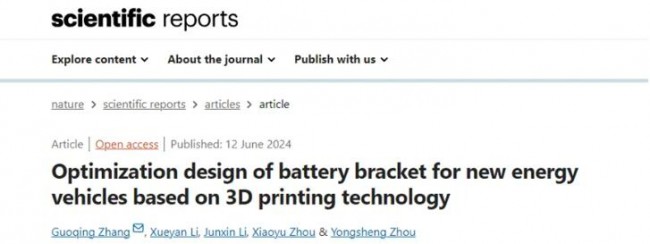 周口師范學院機械與電氣工程學院的張國慶博士在Scientific reports期刊發表了《Optimization design of battery bracket for new energy vehicles based on 3D printing technology》,在3D打印技術助力下,探究了新能源電動汽車電池組系統的性能強化潛能。