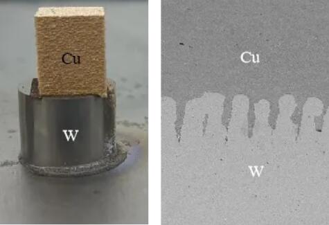 異種金屬增材制造是利用兩種或兩種以上金屬增材成形同一復雜構件,以滿足極端服役環境下構件功能化應用需求。在可控核聚變、航空航天、電力等應用領域,鎢-銅金屬構件具備金屬鎢高熔點、低濺射和低氚滯留以及金屬銅優異導熱、導電等特性,近年來備受關注。