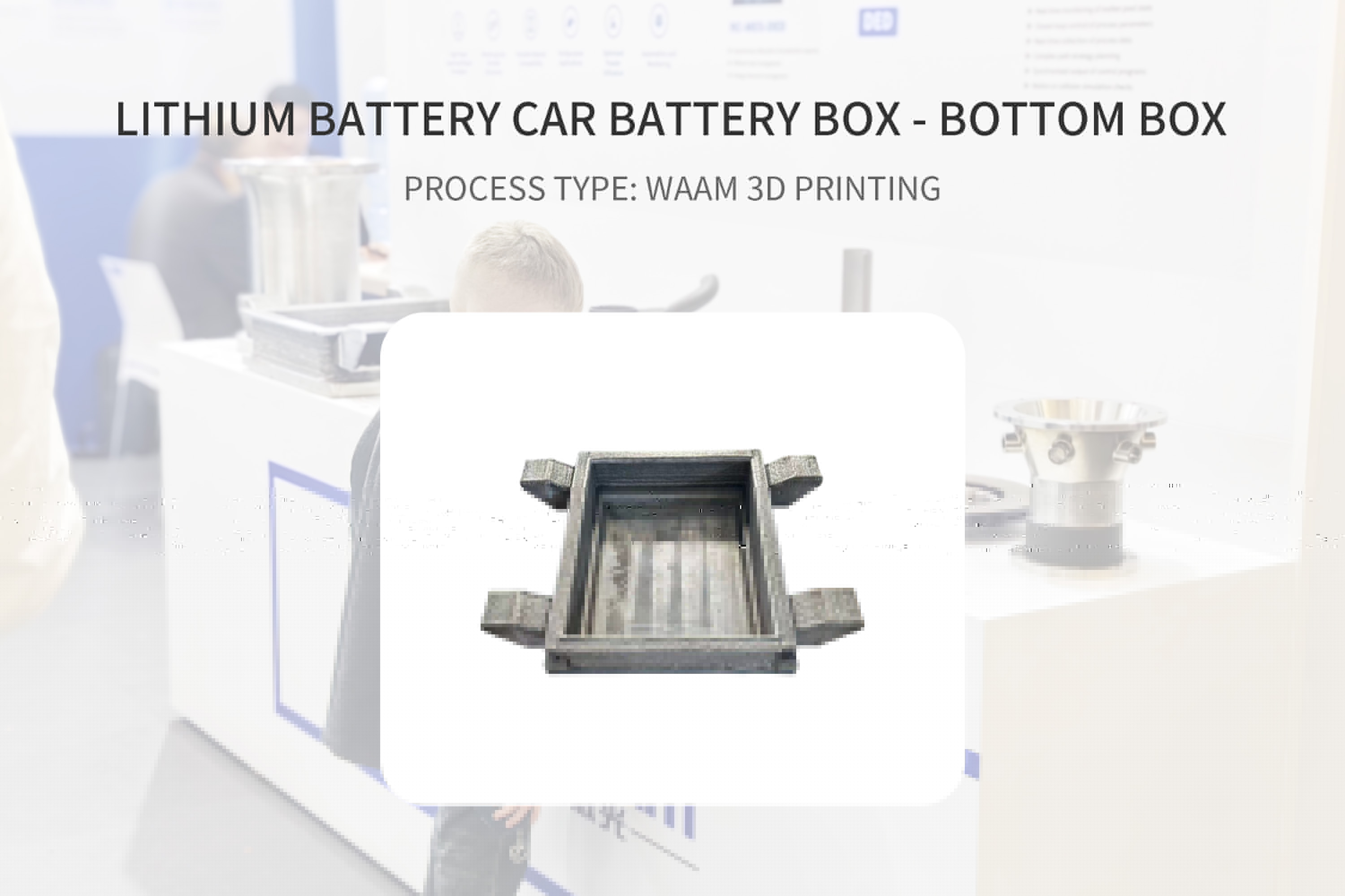 WAAM 3D printing improves the strength-to-weight ratio of battery bottom boxes, making them lighter while better able to withstand vibrations, shocks, and pressure during vehicle operation, thereby ensuring battery safety. It allows for the rapid design and printing of customized battery bottom boxes based on the space layout, battery shape, and performance requirements of different vehicle models, shortening production cycles and increasing manufacturing efficiency. Additionally, the high material utilization rate and low waste help reduce material costs.